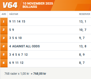 Måndag 10/11: Tips till V64®® på Bollnäs
