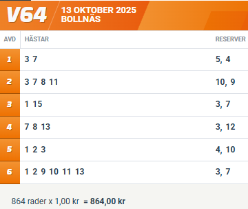 Måndag 13/10: Tips till V64®® på Bollnäs