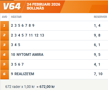 10 NYTOMT AMIRA (V64-4) levererar starkt varje gång och står väldigt fint inne i spårtrappan. Nu möter hon dessutom enbart ston och tar hon bara resan rätt - rundar hon samtliga.