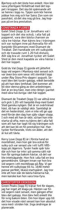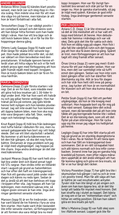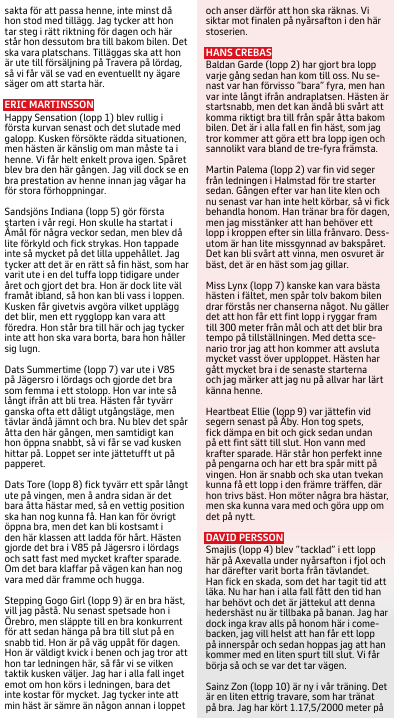 5 Capitano Z debuterar i sin nya regi och såg klart vettig ut i sitt kvallopp han genomförde med just Märt Pello häromveckan. Farten och styrkan är god för klassen och med en rejäl genomkörare inför comebacken räknar vi med en bra insats direkt.