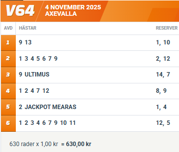 Tisdag 4/11: Tips till V64®® på Axevalla