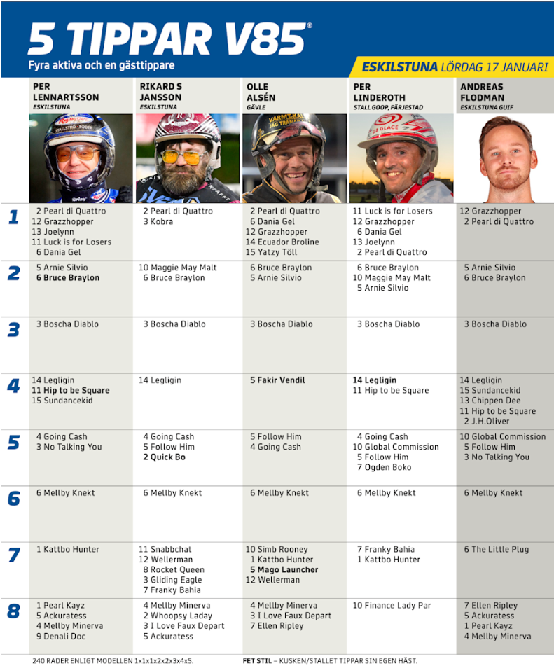 Optimistiska är tongångarna även kring 5 Mago Launcher (V85-7) – en utpräglad spetshäst som kommer från två raka i favoritpositionen. Totalt har han resultaten 9 starter: 8–1–0 från ledningen, där förlusten kom mot segermaskinen Fine Manners sommaren 2024.