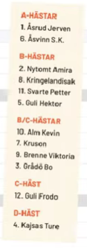 Här är jag helt inne på att 2 Nytomt Amira kan stå i vinnarcirkeln då rygg ledaren är drömmen i lopp för kallblod. 1 Åsrud Jerven blir nog favorit då ledningen känns given.