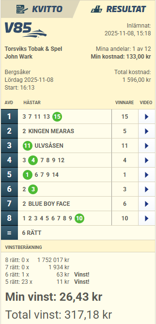Inför V85®® (multijackpot): Wäjersten sitter på leken