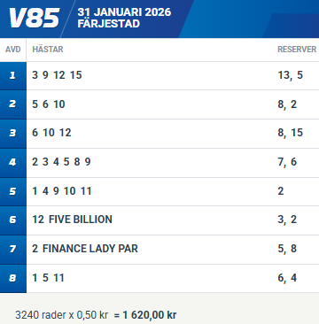 V85-7 • Fin senast