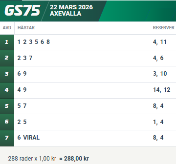 Söndag 22/3: Tips till GS75®® på Axevalla