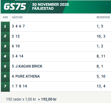Söndag 30/11: Tips till GS75®® på Färjestad
