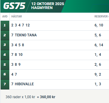 TR Medias tips till söndagens GS75®® på Hagmyren