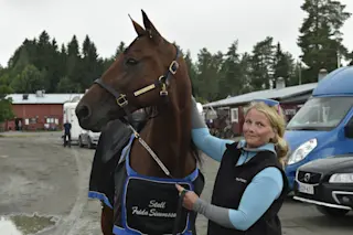 – Ja, han är min favorit som gjort mycket för mig! Men nu har han blivit en ”gammal gubbe”. Han blev skadad för ett och ett halvt år sedan och det var inte säkert att han skulle komma tillbaka. Därför är det så roligt att vi har tränat fram honom till ett kval. Senast strök vi honom på grund av banan. Vi får se om han ska fortsätta tävla, han känns fin hemma och är glad. Jagar pengar, säger Jonna Irri: