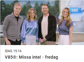 Vid V85®® utöver ordinarie lördagsomgång bjuder vi på extra tips från Vi Tippa.