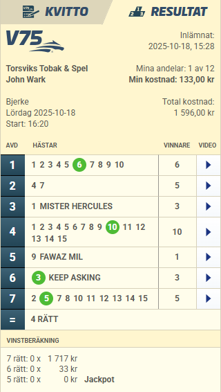 Vinnarcirkeln: Lördag v.43 Jägersro