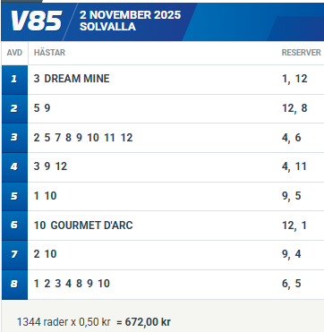 V85 Solvalla 2 november